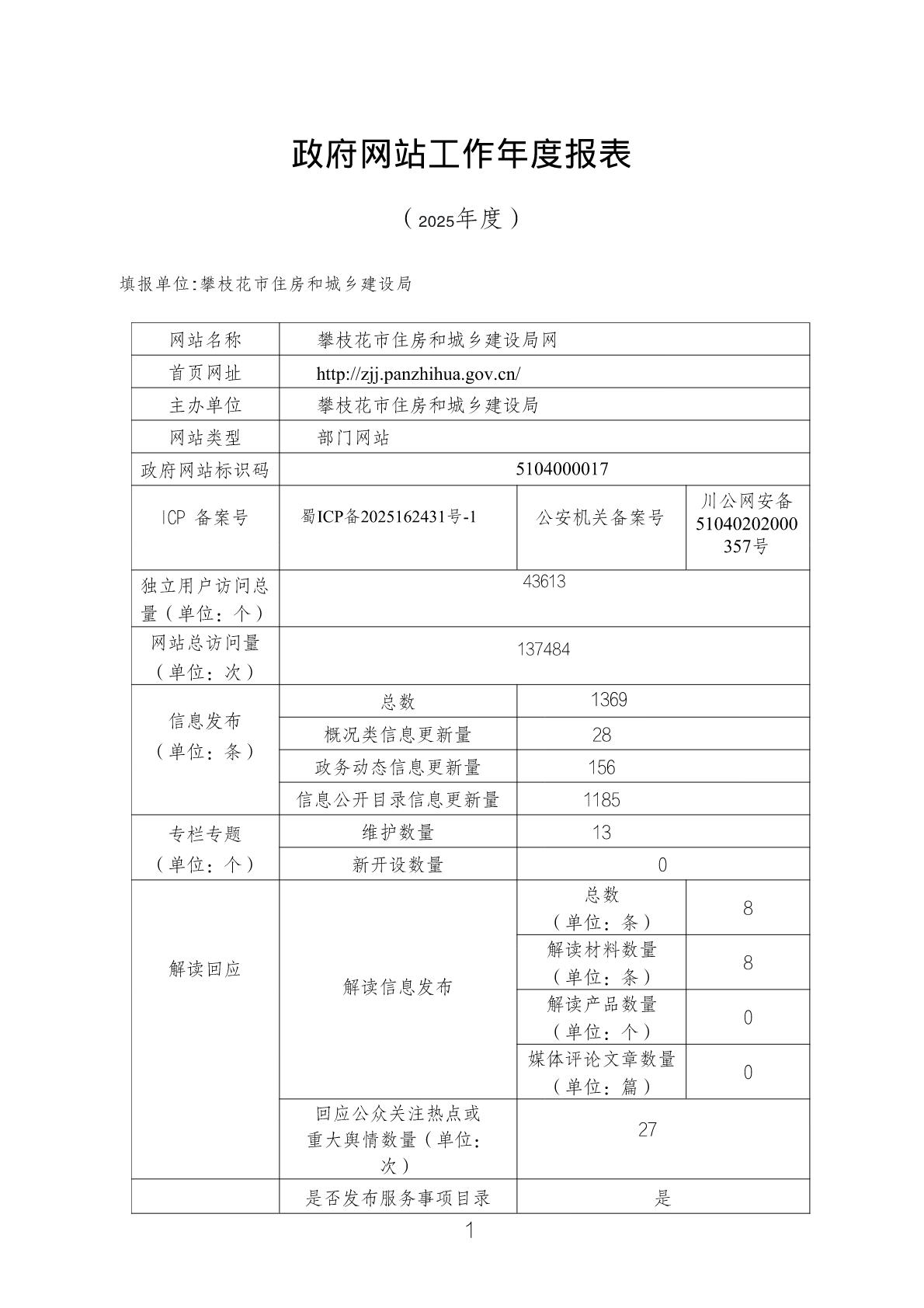 攀枝花市住房和城乡建设局网站工作年度报表(2025年)