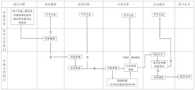 认定流程包括申报、推荐、审查、公示、公布等环节(附件1)。
